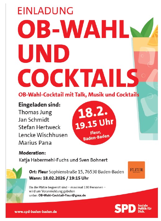 Die SPD Baden-Baden fordert nach den jüngsten Entwicklungen den sofortigen Rücktritt von Oberbürgermeister Dietmar Späth. Nach der Trunkenheitsfahrt im November und der seit Monaten andauernden Vakanz an der Verwaltungsspitze sei klar: „Baden-Baden braucht endlich Klarheit und eine handlungsfähige Stadtspitze“, so der Co-Vorsitzende Dirk Baranek.