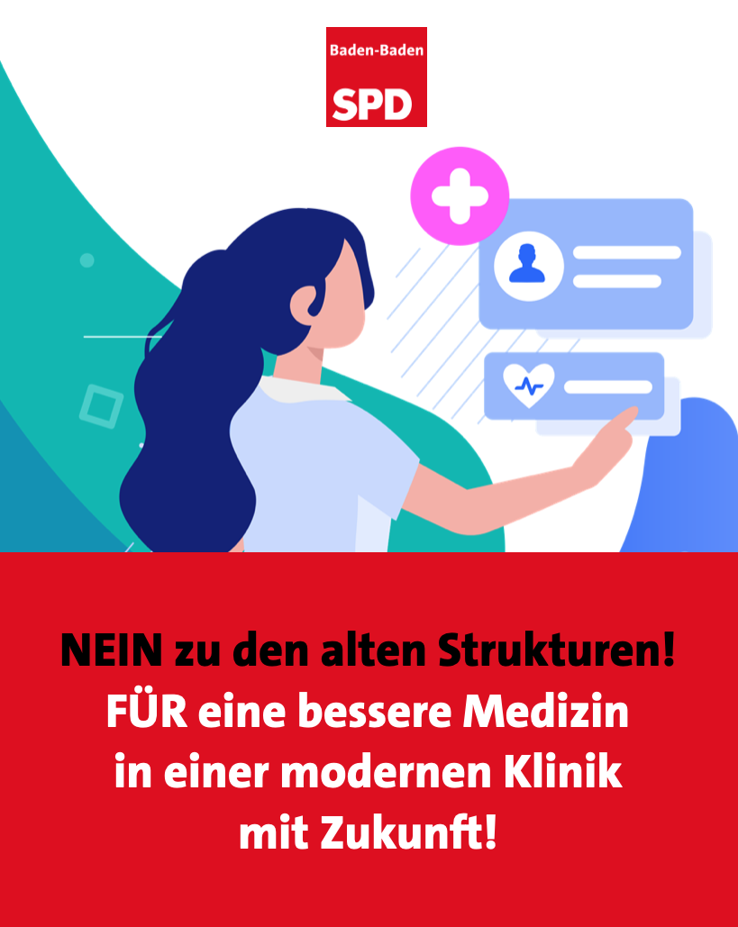 Die SPD-Fraktion steht mehrheitlich hinter der Absicht eines Zentralklinikneubaus dem Bau eines Zentralklinikums. Im Rahmen der Realisierung eines sollen Klinikneubaus ergeben sich für die Stadt Baden- Baden weitreichende Chancen, bestehende Probleme im Bereich der ärztlichen Versorgung, der fehlenden Pflegeeinrichtungen und Einrichtungen des betreuten Wohnens u.v.m. durch das Freiwerden des Gebäudes des Klinikums Mittelbaden in Balg zu lösen.
