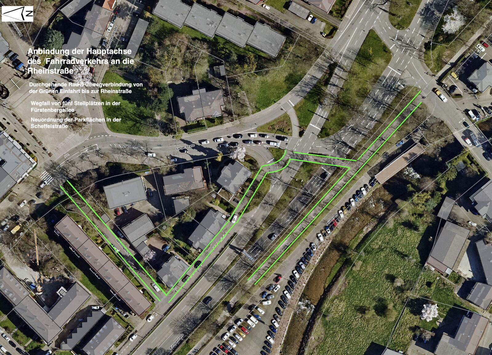 - Die gesamtstädtische Erschließungsfunktion der„Radallee“ wird durch die Anbindung der Rheinstraße an die „Grüne Einfahrt“ gestärkt.