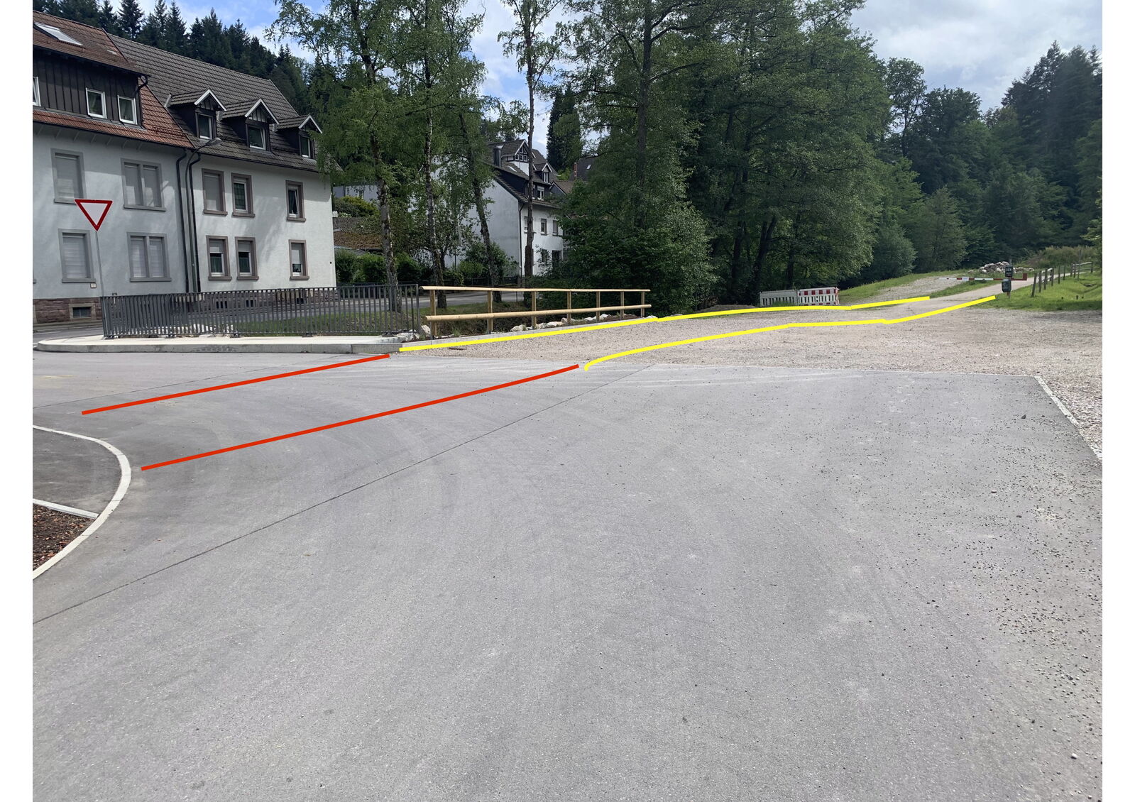 - Von der Holzhofbrücke bis zum Bauernhofspielplatz wird eine sichere Geh- und Radwegverbindung über den sogenannten„Ausweichparkplatz“ der Geroldsauer Mühle baulich hergestellt.